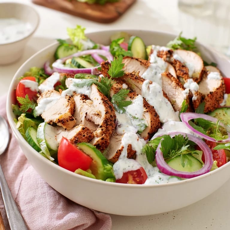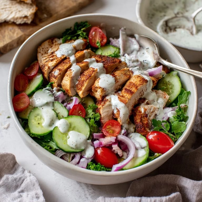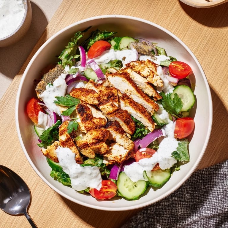 Sometimes I swap in roasted cauliflower or halloumi for the chicken when I want a vegetarian version. Pickled red onions add this incredible tang that cuts through the rich spices. The formula stays the same: something warm and spiced, something fresh and crunchy, and that creamy sauce to tie it all together.