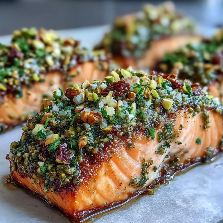 If pistachios aren't your thing, try almonds, walnuts, or even hazelnuts for a different nutty flavor. You can swap the herbs based on what's fresh, basil, cilantro, or chives all work beautifully. For a spicier kick, add a pinch of red pepper flakes or a dash of harissa to the crust. If you want extra crunch, pop the crusted salmon under the broiler for a minute or two before serving, just watch it closely so the nuts don't burn.