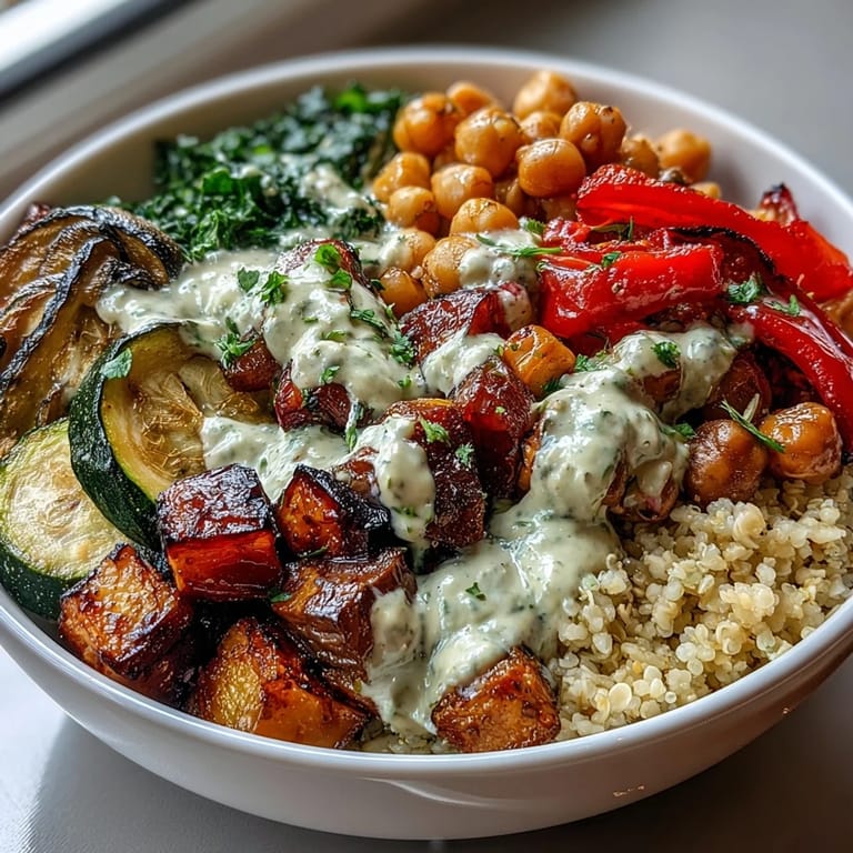 Save to Pinterest One Tuesday afternoon, I was staring at my fridge trying to figure out lunch for the week when I realized I had all these beautiful vegetables that needed rescuing. I started roasting them on a whim, then realized I had bulgur in the pantry and tahini in the back—and suddenly these separate ingredients became something I couldn't stop thinking about. That's when this bowl was born, and it's been my go-to whenever I need to feel nourished without spending hours in the kitchen.